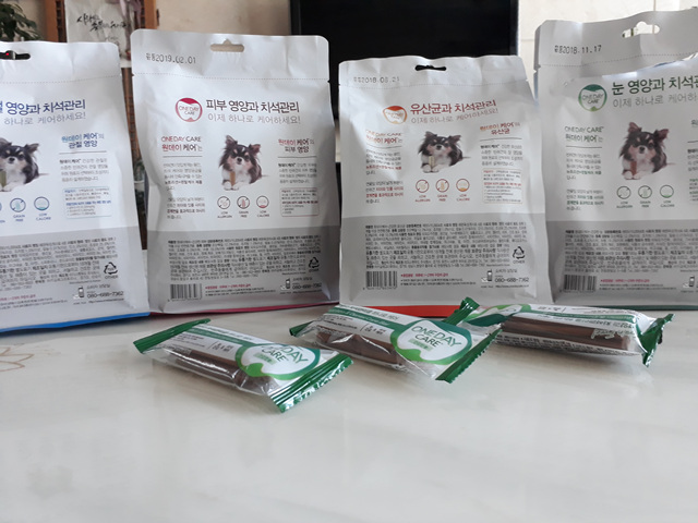 - 눈 영양과 치석관리(유통기한 : 2018.11.17) -> 봉지 뜯음. 3개정도 사용함