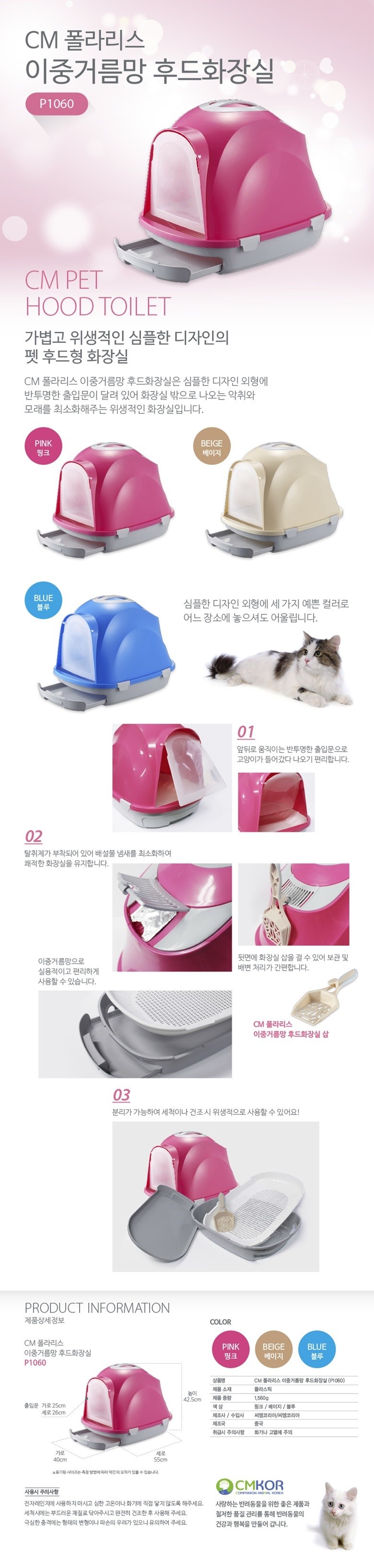 cm폴라리스 이중거름망 후드 고양이 화장실