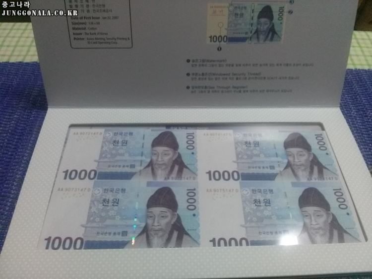 ⊙ 상품 상세 설명 : 집에 연결형지폐 1000원권 4장짜리와 귀한 10원짜리 동전