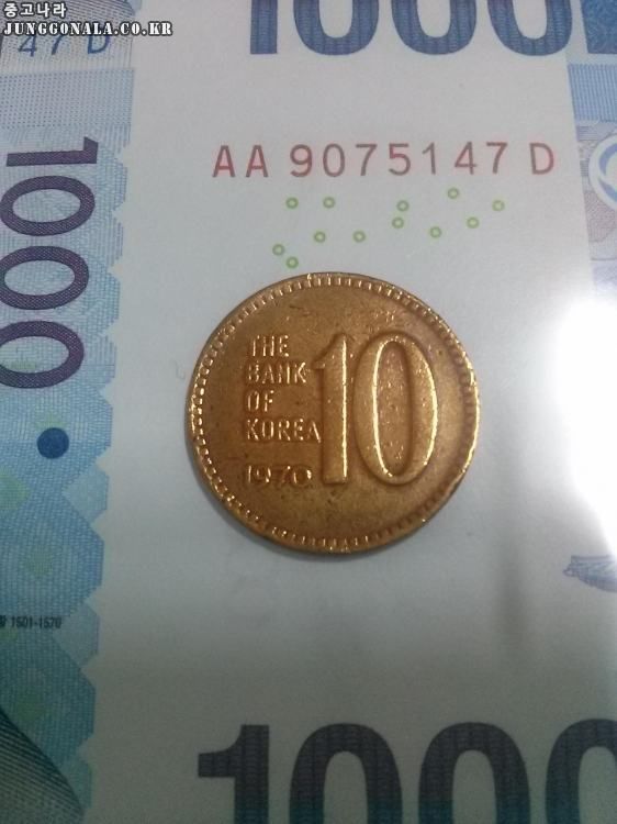 1000원 4장 연결형지폐와 1970년도10원주화