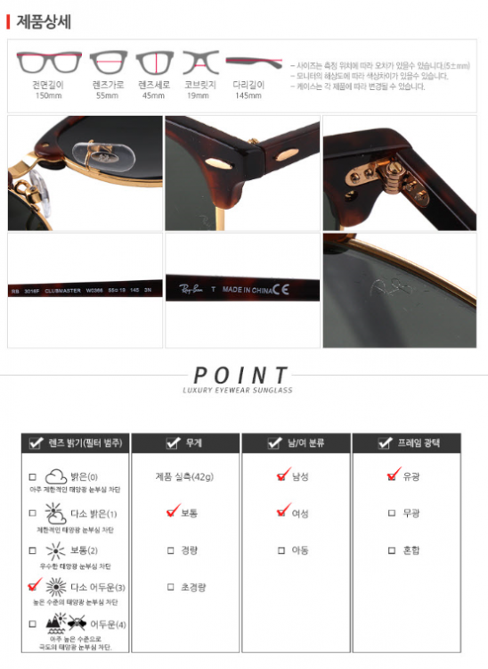 레이벤 Ray Ban W0366