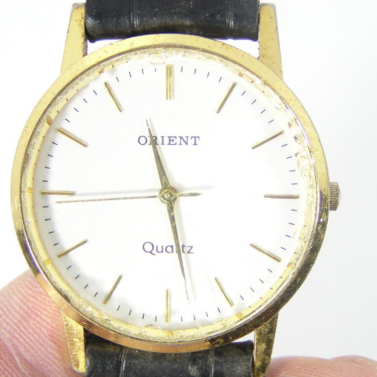 전면 유리테두리에 전반적으로 흠집이 있으며 가죽밴드는 사용감 있습니다.