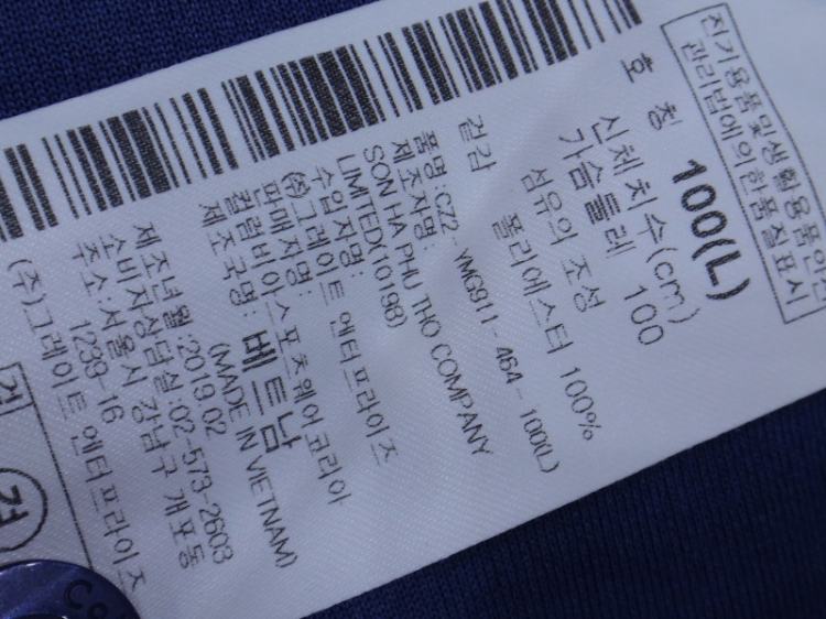 품질:오른쪽 소매 부분에 특정 업체 로고가 있으니 화살표