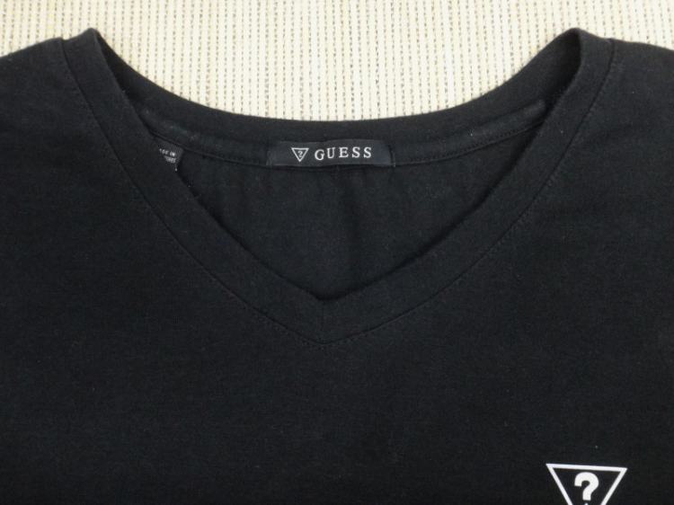 (110호) 게스 블랙 브이넥 면스판 반팔 티셔츠