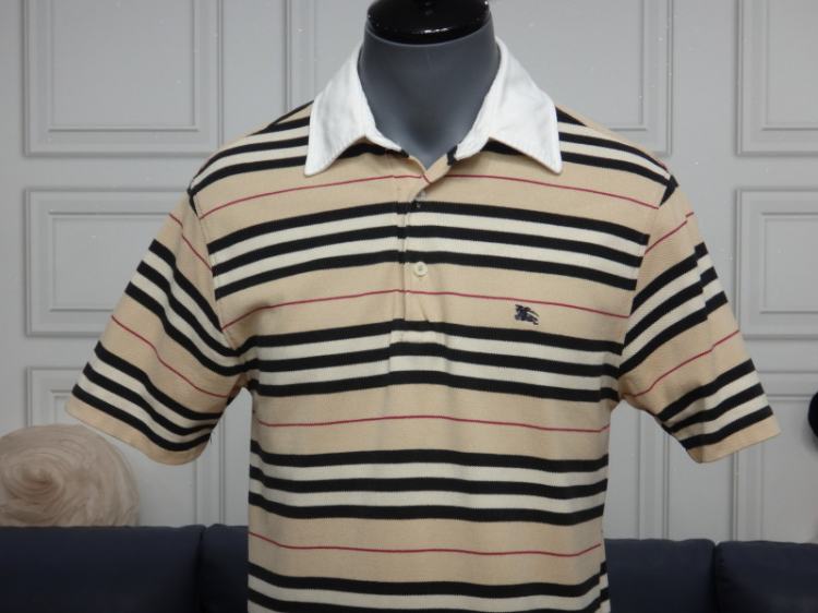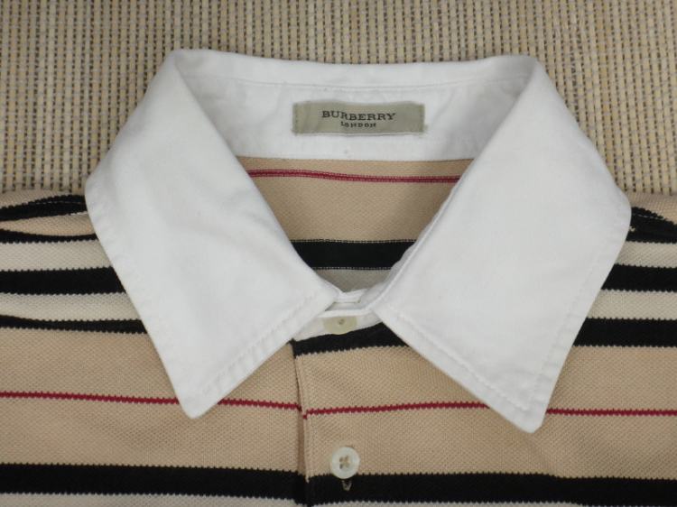 (100호) 버버리 런던 스트라이프 카라 반팔 면 티셔츠 file
