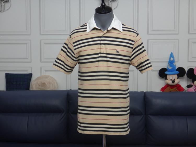 ●버버리 런던 스트라이프 카라 반팔 면 티셔츠●