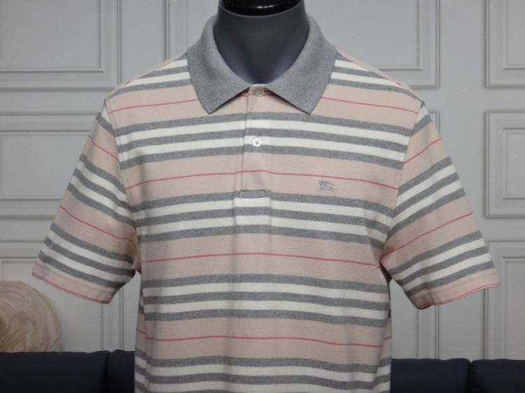 ●버버리 런던 스트라이프 카라 반팔 면 티셔츠●