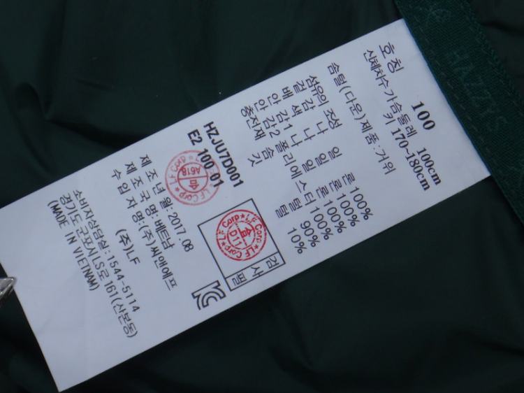 충전재:거위솜털90%  깃털10% (보온효과 좋음)