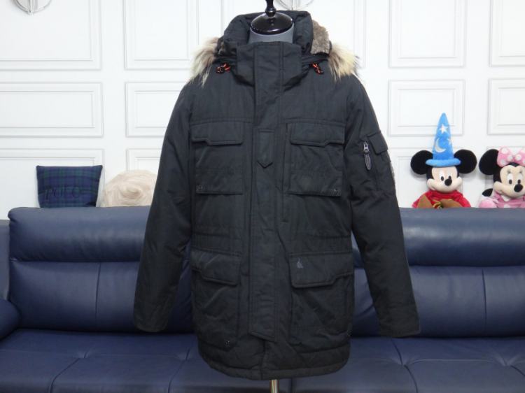 (105호) 빈폴 블랙 라쿤털 후드 사파리 다운점퍼