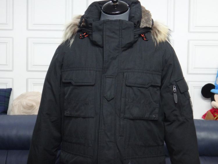 ●빈폴 블랙 라쿤털 후드 사파리 다운점퍼●
