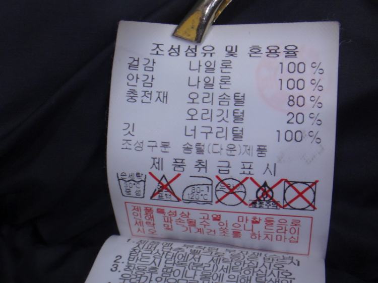 충전재:오리솜털80% 오리깃털20% (보온성좋음)