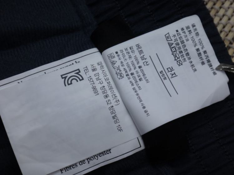 겉감과 안감 모두 착용감없는 미착용 제품입니다.