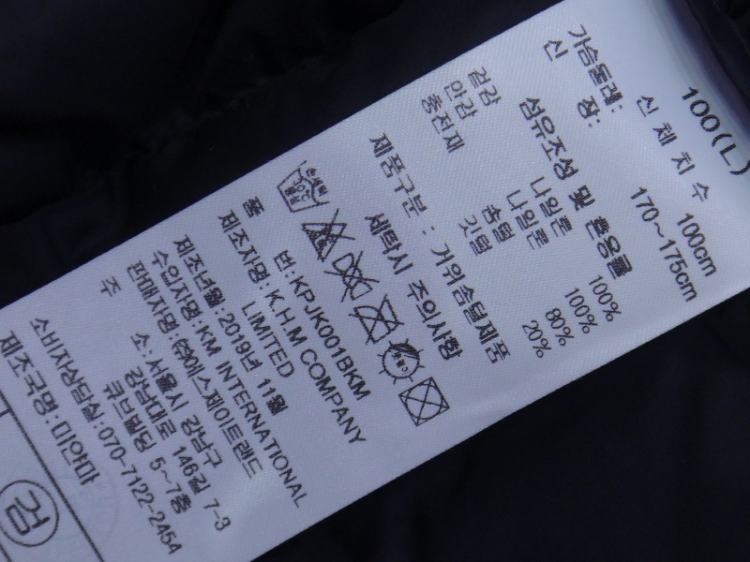 충전재:거위솜털80% 거위깃털20% (보온성좋음)