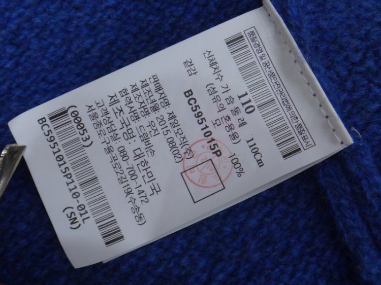 (110호) 빈폴 블루 전판 조직 모100% 라운드 풀오버