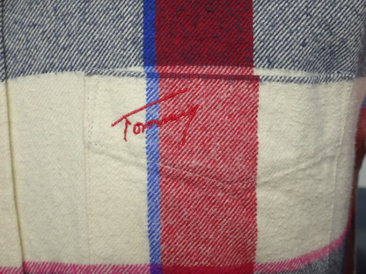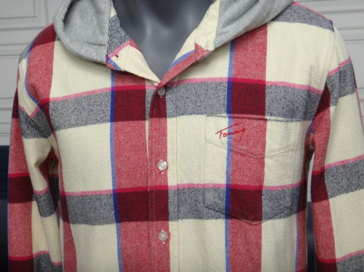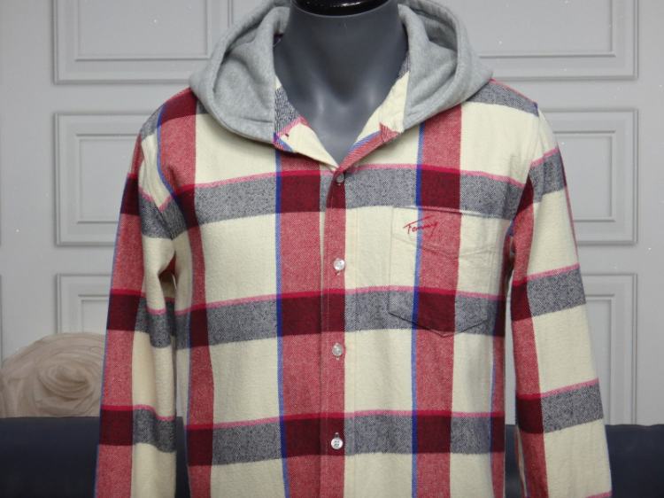 ●TOMMY 남성 체크 후드 면 셔츠●