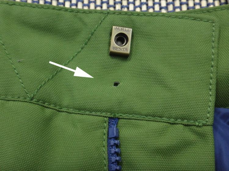 품질:화살표로 표시한 부분인 여밈 고리 한곳이