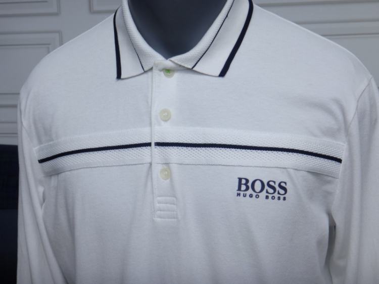 ●휴고보스 남성 화이트 카라 긴팔 티셔츠●