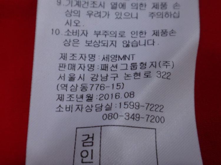 품질:겉감과 안감 모두 착용감없는 미착용 제품입니다.