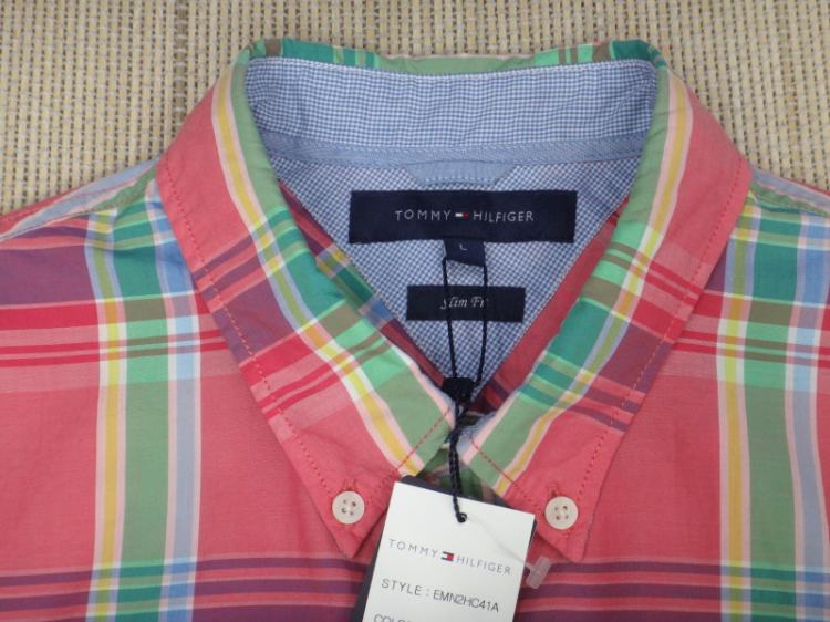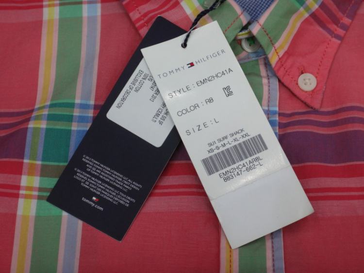 ●타미힐피거 남성 빅체크 반팔 면셔츠●