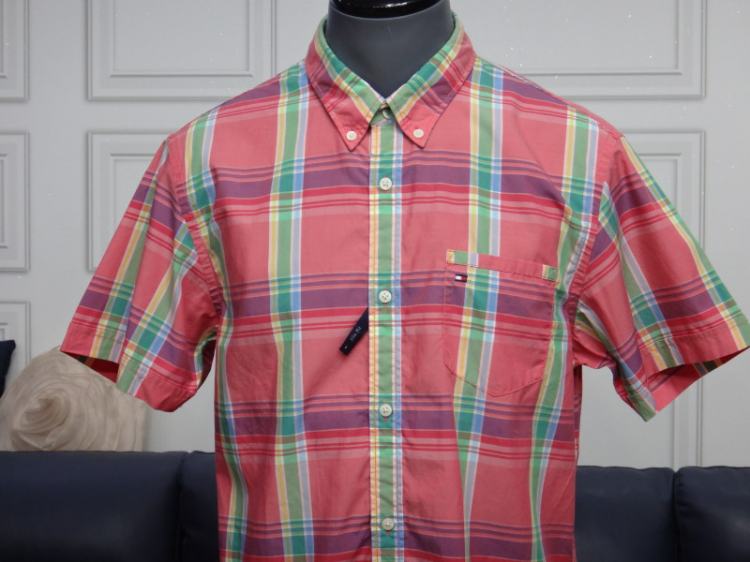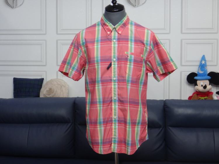 (100호) 타미힐피거 남성 빅체크 반팔 면셔츠