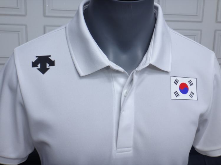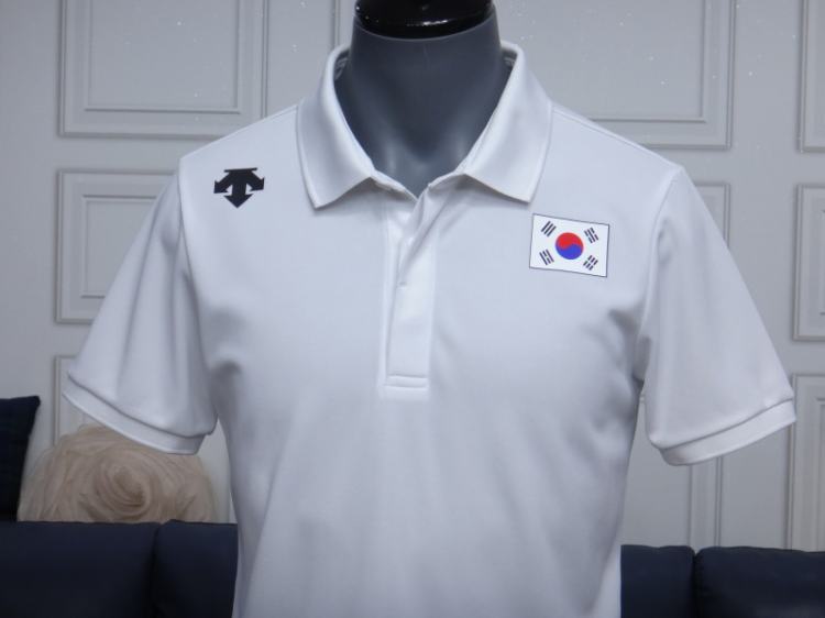 ●데상트 남성 화이트 카라 반팔 티셔츠●
