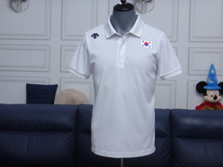 (95호)데상트 남성 화이트 카라 반팔 티셔츠