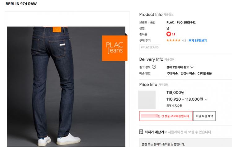 (35~36) 플랙 BERLIN 974 RAW 슬림진