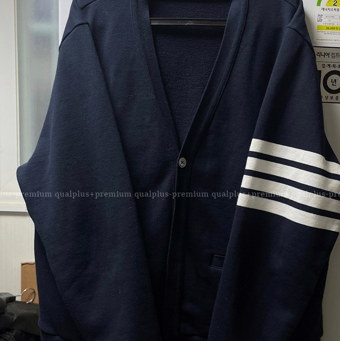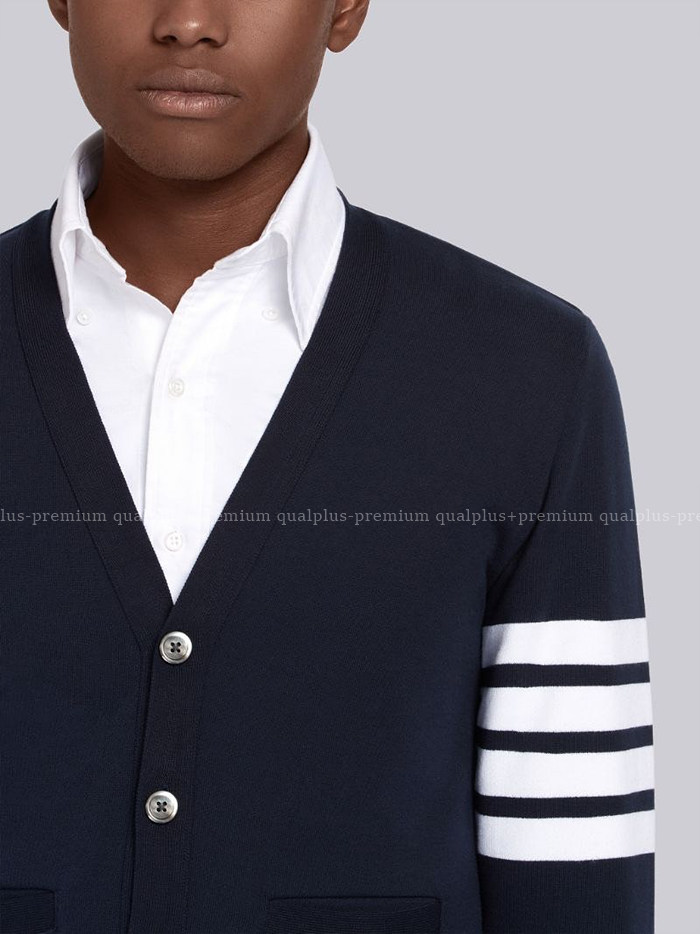 -퀄플러스+ 톰브라운 트레이닝 웨어러블 4-바 v넥 가디건