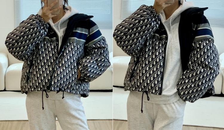 [핏베럴] 디올 오블리크 리버서블 크롭 다운 패딩