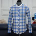 (슬림95호) 솔리드 옴므 헨리넥 체크 슬림핏 긴소매 면셔츠